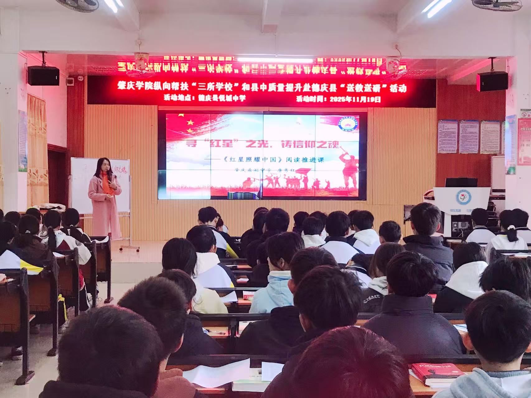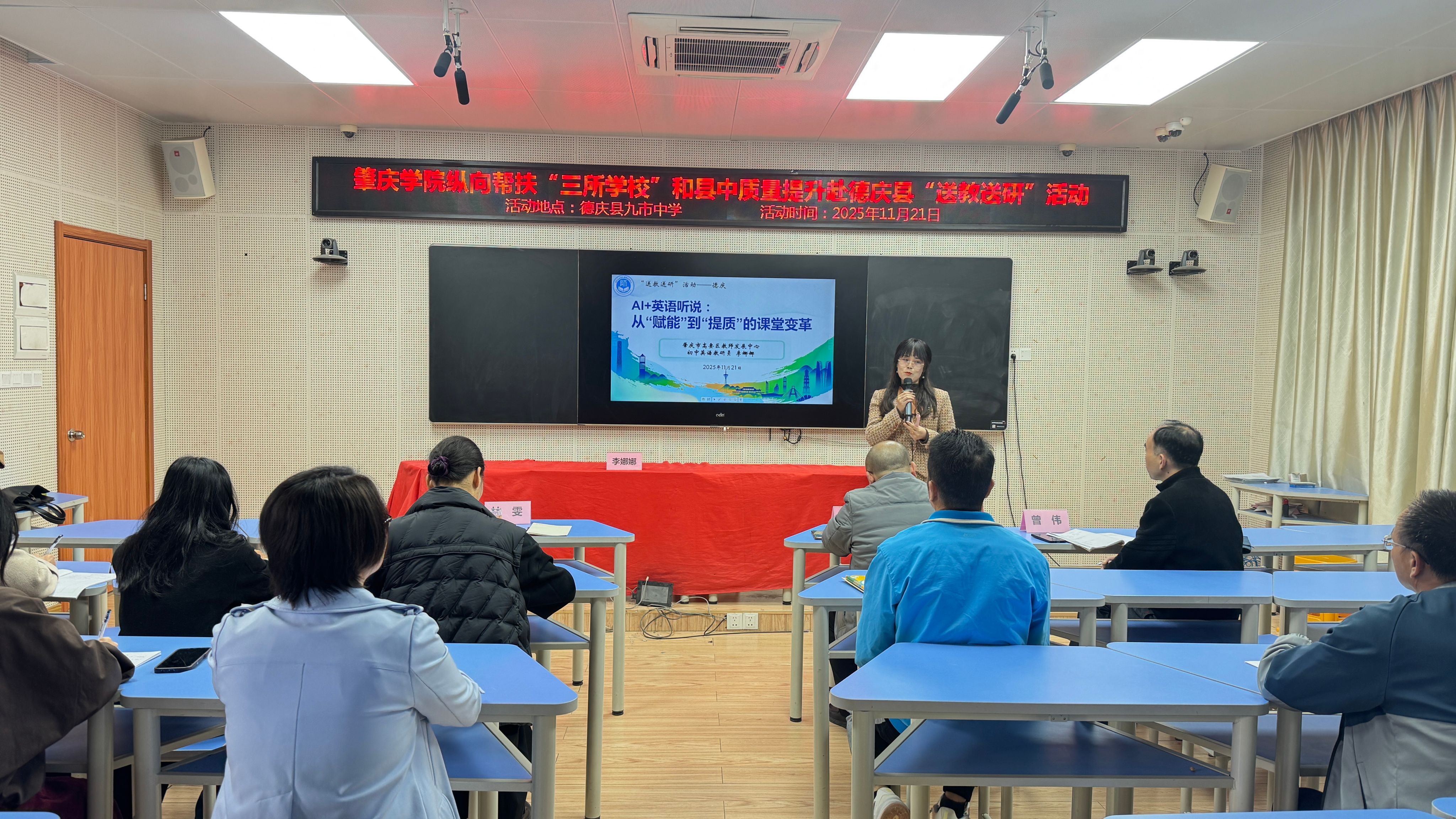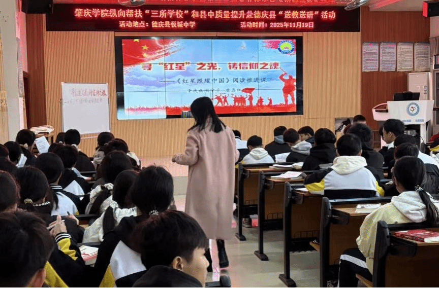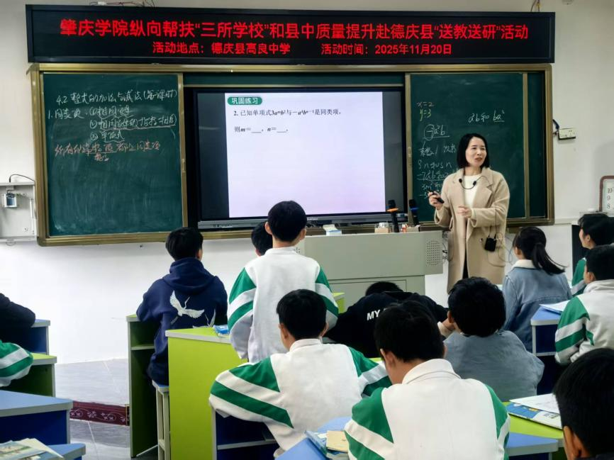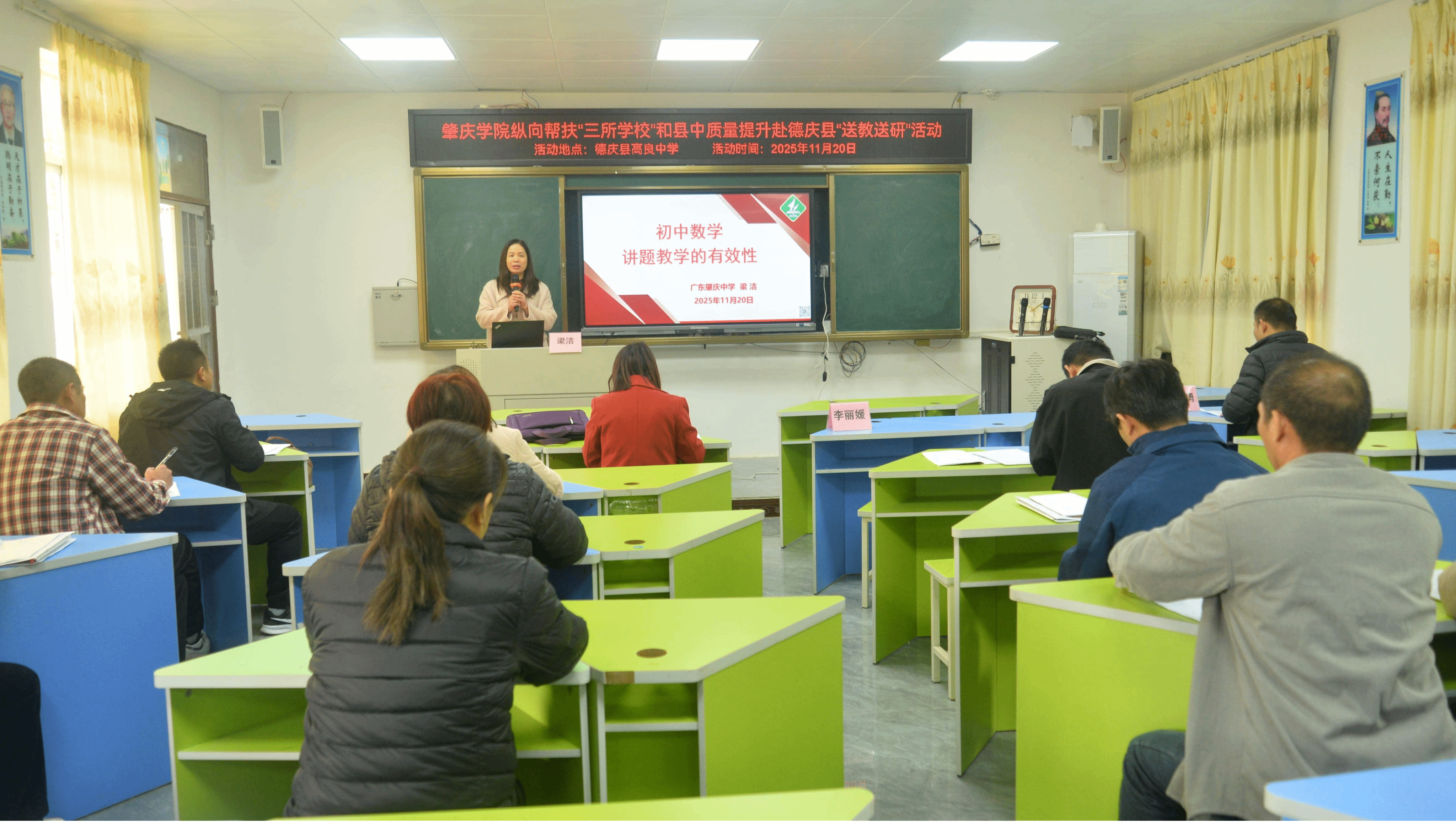 为深入落实广东省教育厅关于师范院校纵向帮扶欠发达地区“三所学校”和县中质量提升教育帮扶等系列文件精神,搭建城乡学科教研桥梁,肇庆学院联合肇庆市教师发展中心,组建语文、数学、英语三大学科教研员及一线骨干教师团队,于11月19日至21日赴德庆县悦城中学、高良中学、九市中学开展“送教送研”专项活动,以优质教育资源下沉助力县域教学质量提升。