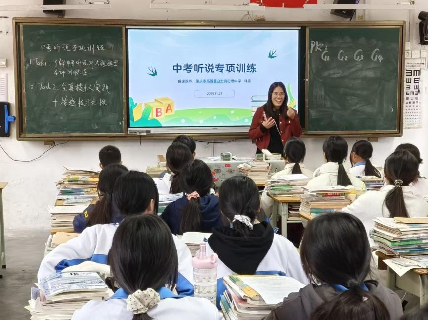 本次活动紧扣县域教学实际需求,采用“示范授课+专题研讨+精准指导”的闭环模式。送教团队围绕新课标核心素养要求,精心打磨示范课,课堂上通过情境创设、任务驱动、互动探究等创新教学方法,生动展现了优质课堂的实施路径。语文课堂注重文化浸润与思维训练,数学课堂强化逻辑推导与实践应用,英语课堂以AI赋能课文改编中考听说题型,打破场地限制提供日常训练方案,为当地教师提供了可借鉴、可复制的教学范例。
