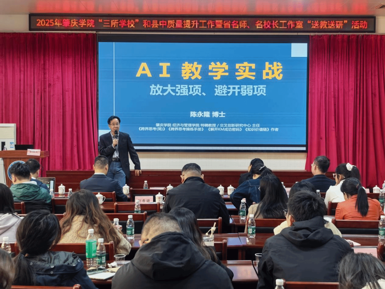 活动依托“高校+名师工作室+地方学校”的三位一体帮扶机制,紧扣“数字化转型”与“核心素养”两大时代命题,内容丰富、形式多样。长江学者、国家级高层次人才,陈永隆博士带来的《AI教学实战:放大强项、避开弱项》与严玲珍校长的《AI循证的CSMS课堂数字化转型实践研究》,深入剖析了人工智能时代教育教学的变革路径;王李萍、杨勇文等名校长则围绕“校长思维”、“学校文化育人”等主题,为参培管理者提供了学校治理的新范式与新思路。同时,南药科普劳动实践基地的德育融合课和AI赋能的英语课堂等示范课,展示了各学科在核心素养落地上的具体实践,为当地教师提供了可复制、可推广的教学样本。