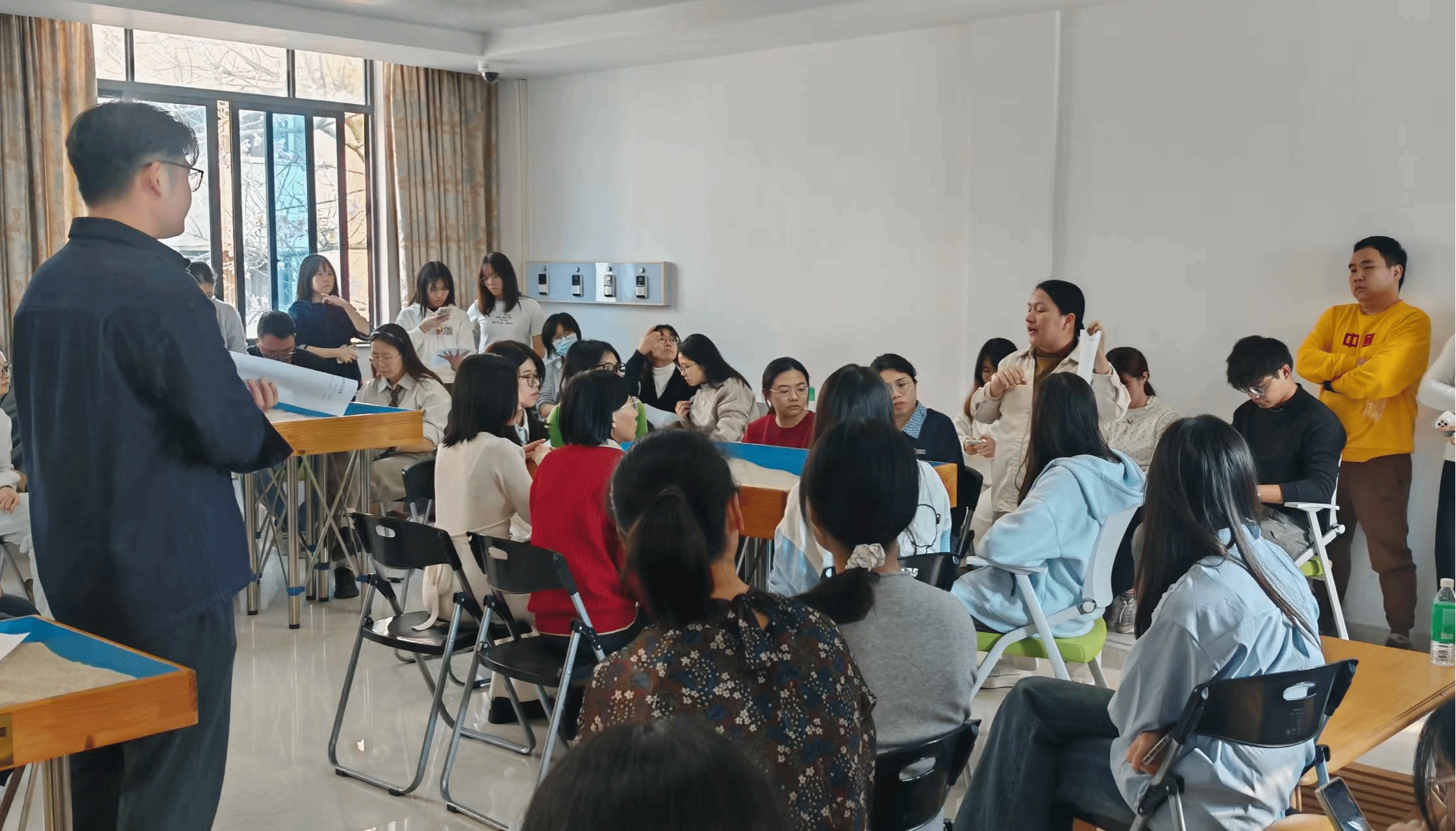 肇庆市第三人民医院副院长陈东梅主任医师以“六大精神疾病鉴别精讲”开篇,为学员筑牢病理认知基础;主治医师等专家围绕认知行为治疗、咨询基本技术、沙盘作品解读等核心内容展开专题授课,深入浅出解读心理健康教育前沿理念与实操方法。实操训练环节设于肇庆市第三人民医院,学员们在专家指导下开展咨询技术演练、个体沙盘游戏治疗流程示范等实战训练,通过模拟咨询、案例研讨、现场督导等形式,锤炼实践应用能力。