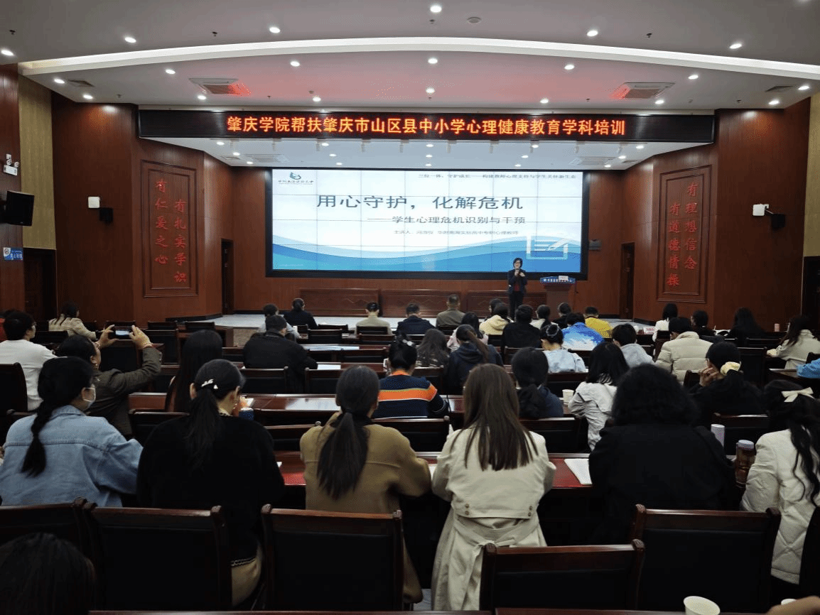 为落实广东省“百县千镇万村高质量发展工程”教育行动相关部署,扎实推进全口径全方位融入式帮扶工作,助力山区县基础教育高质量发展,12月9日,由肇庆学院教师教育学院、肇庆市教师发展中心联合主办,怀集县教育局、怀集县教师发展中心承办的肇庆市山区县中小学心理健康教育学科培训活动在怀集县教师发展中心学术报告厅成功举办。来自肇庆市及封开县、广宁县、德庆县、怀集县的心理健康教研员,四个山区县专职心理健康教育教师代表,怀集县“三所学校”和县中教师代表共计二百多人参加培训。