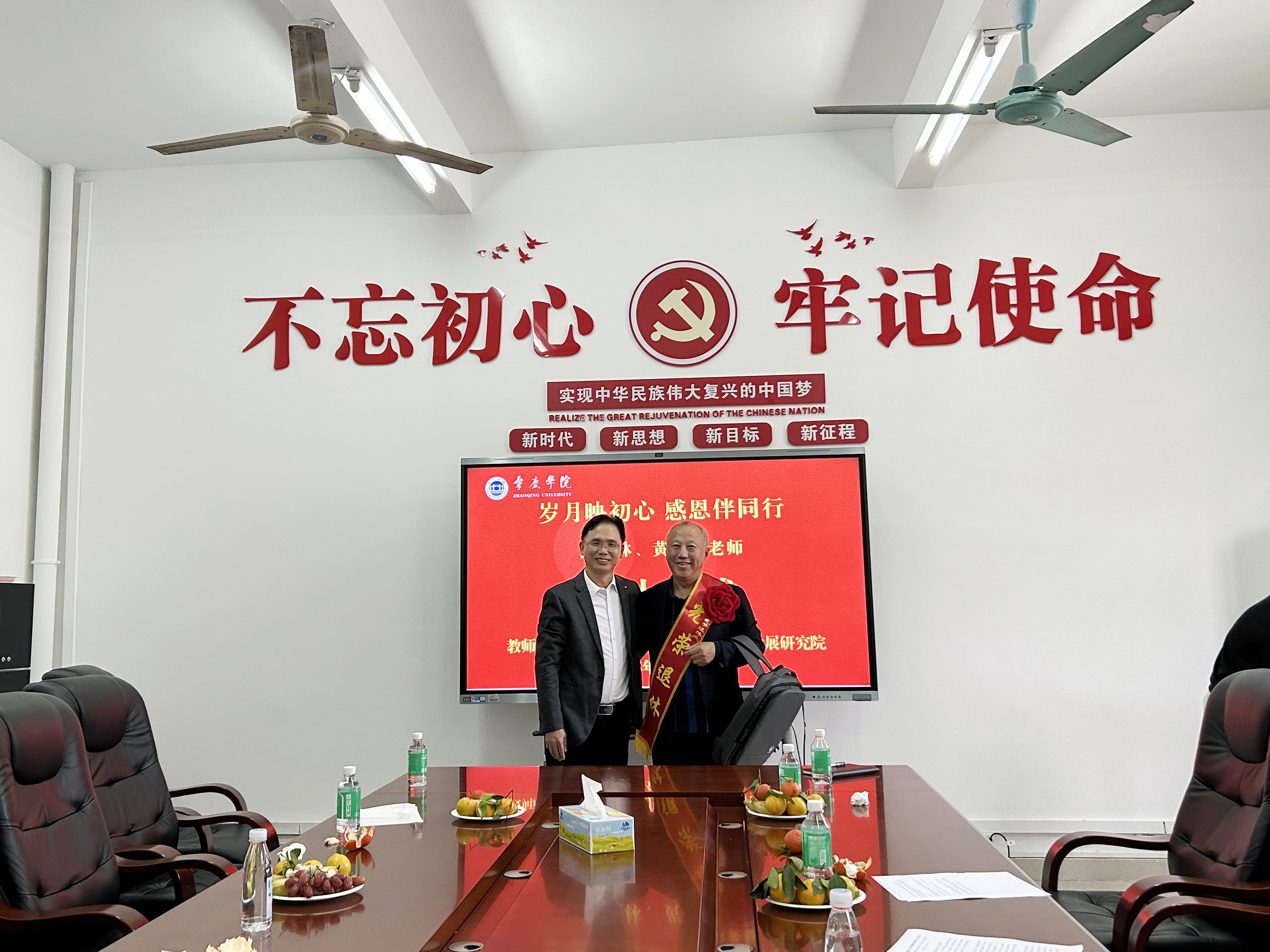 茶话会尾声,学院为荣休教师献上鲜花和背包,以鲜花致敬耕耘岁月,用背包寓意“整装再出发”,祝愿前辈们带着温暖与祝福,开启人生崭新篇章。此次荣休茶话会的举办,不仅为荣休教师送上了最诚挚的关怀与敬意,更搭建了传承教育精神、凝聚学院向心力的良好平台,激励着全体教职工接续奋斗、砥砺前行。