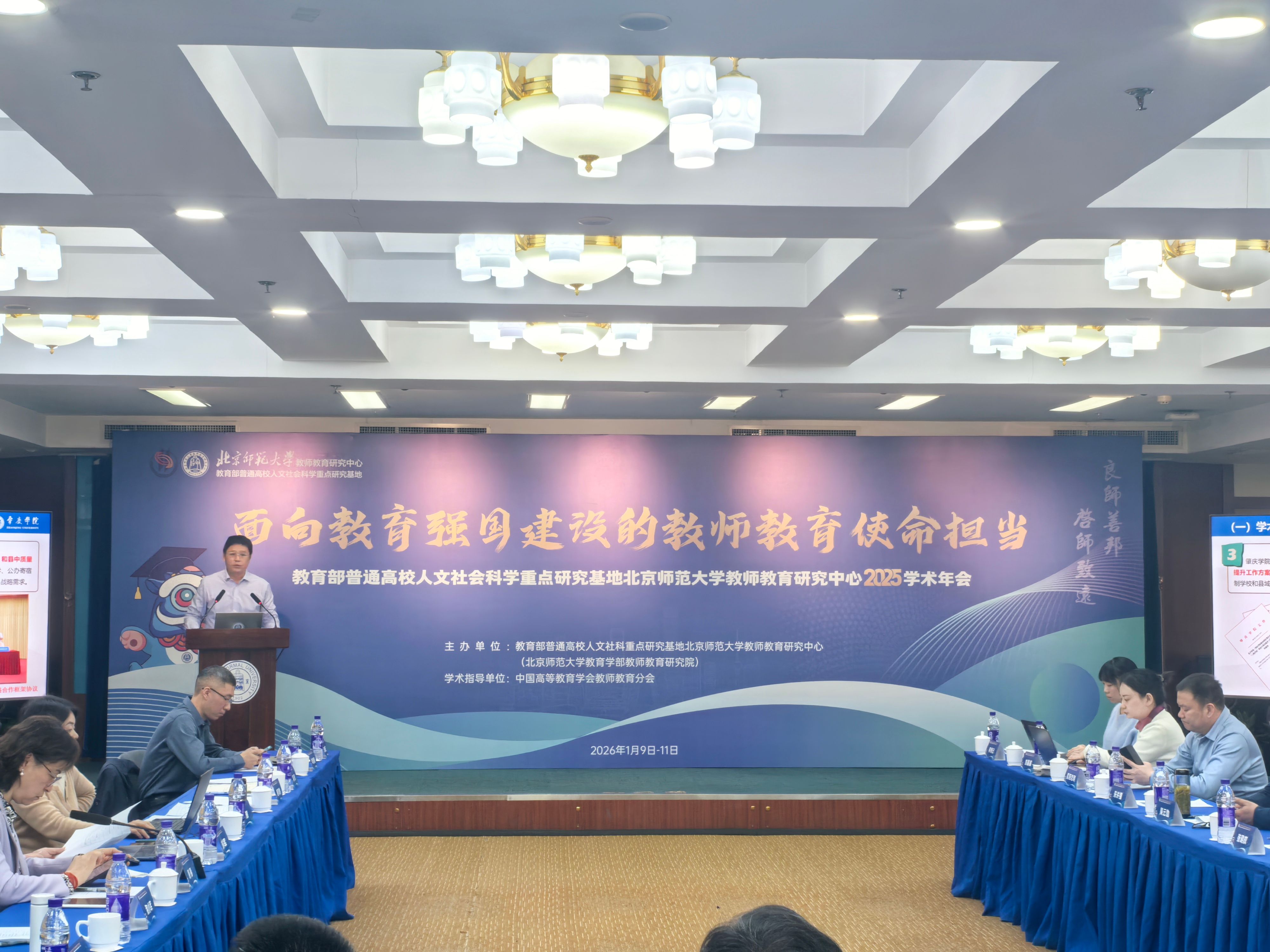 1月9日至11日,教育部普通高校人文社科重点研究基地北京师范大学教师教育研究中心2025学术年会在北京师范大学海淀校区举办。教育部教师工作司副司长韩劲红、北京师范大学教育学部部长、教育部普通高校人文社科重点研究基地北京师范大学教师教育研究中心主任朱旭东等领导参加启动仪式。本届年会以“面向教育强国建设的教师教育使命担当”为主题,聚焦教育强国目标下的教师教育新体系构建、高素质教师培养机制创新、智能技术赋能专业发展,以及区域教研共同体建设等核心议题。校长李琴应邀出席,党政办公室主任陈前、教师教育学院(教师发展中心)党总支书记植可焕等一同参会。