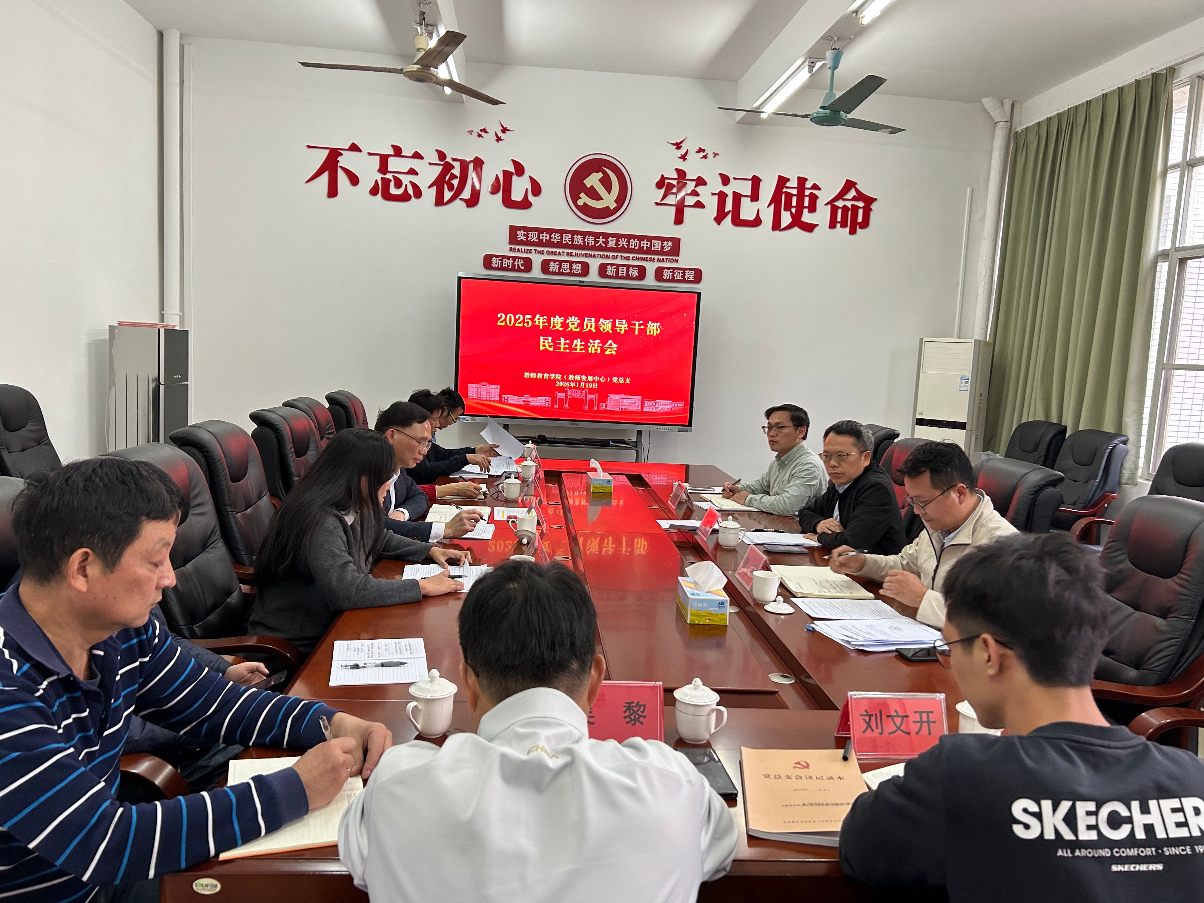 1月19日,教师教育学院(教师发展中心)召开2025年度党员领导干部民主生活会。副校长胡文涛出席并作指导讲话,学校第二督导组组长、党政办副主任唐乐等相关同志到会全程指导。会议由党总支书记植可焕主持。