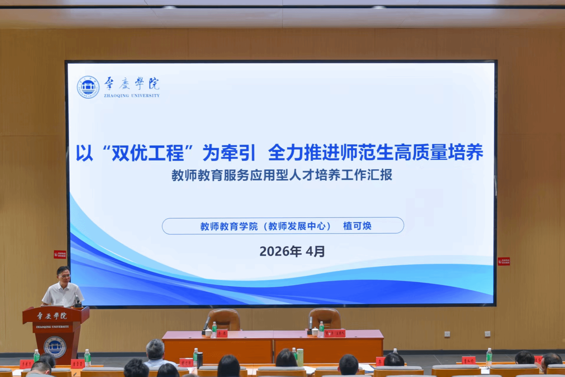为深化教育教学改革,扎实推进学校“双优建设、更名大学、博士点建设”三大工程,全面提升应用型人才培养质量,4月1日,学校召开应用型人才培养专题会议。校长李琴出席会议并讲话,副校长胡文涛作主题报告,各二级学院院长、副院长及专业负责人等120余人参会。教师教育学院党总支书记植可焕代表学院参会,并作专题交流发言,分享学院师范生培养实践经验。