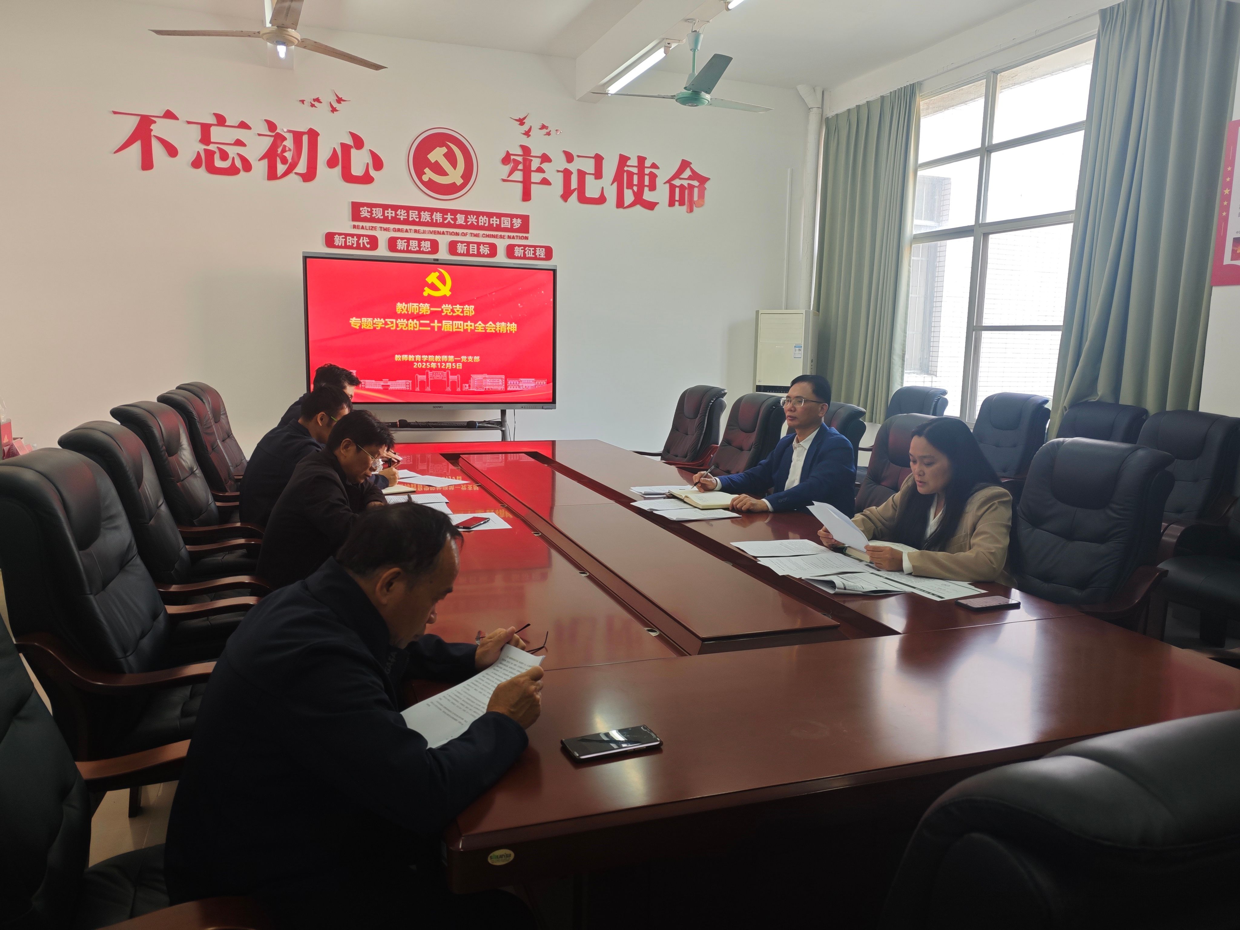 12月5日上午,教师教育学院(教师发展中心)教师第一党支部在209会议室召开专题学习会议,深入学习贯彻党的二十届四中全会精神。党总支书记植可焕以普通党员身份参加专题学习会,会议由副院长(副主任)、教师第一党支部书记薄艳玲主持。