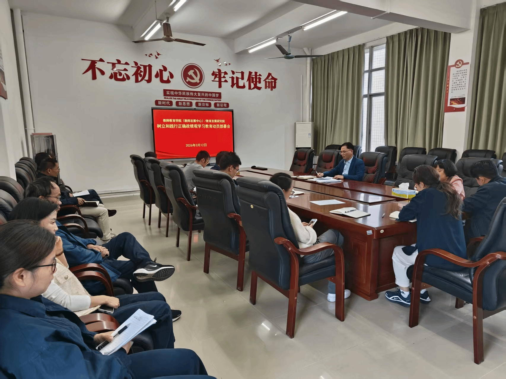 3月12日,教师教育学院(教师发展中心)/教育发展研究院召开树立和践行正确政绩观学习教育动员部署会。党总支书记植可焕主持会议并作动员讲话,学院全体教职工参加会议。